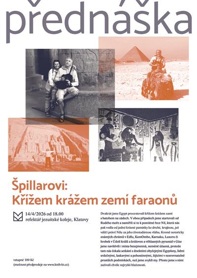 Zveme vás na přednášku manželů Špillarových, kteří společně procestovali Egypt. Podělí se s vámi o zážitky z návštěv míst notoricky známých, ale i těch bezejmenných, ovšem neméně úžasných.
