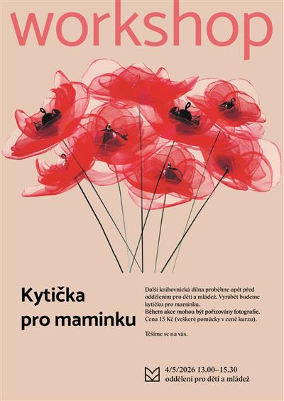 Přijďte na další knihovnickou dílnu, kde tentokrát můžete vyrobit kytičku pro maminku. Kurzovné 15 Kč.