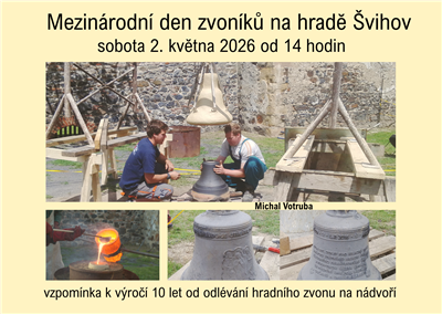 Opět na hradě přivítáme zvonaře Michala Votrubu, který stojí za jeho výrobou. Příprava formy i vlastní odlévání probíhalo za velkého zájmu před zraky mnoha diváků přímo na hradním nádvoří 11. června 2016. Dozvíme se, jak takové umělecké dílo vlastně vzniká a co vše tomu předcházelo, než se jeho hlas poprvé rozezněl ze sanktusníku zdejší kaple. Akce začíná ve 14 hodin, můžete se těšit na vyprávění doplněné fotografiemi, na závěr pozveme návštěvníky ke společnému zvonění. Kdo ví, třeba bude i šance nahlédnout do krovu přímo ke zvonu. Hradní zvon je zasvěcen Panně Marii a jeho váha dosahuje 30 kilogramů. | ||
