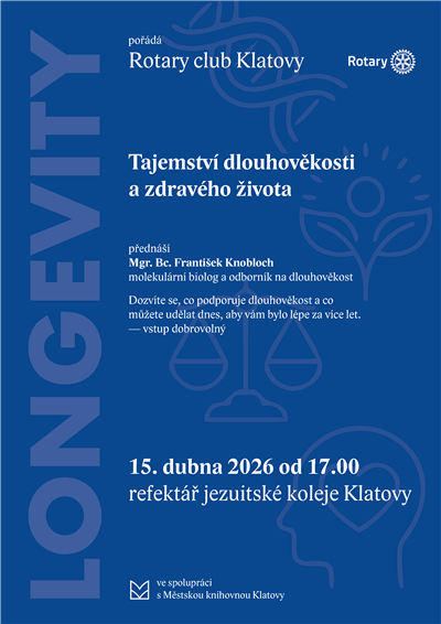 Přijďte si poslechnout přednášku Mgr. Bc. Františka Knoblocha. Dozvíte se, co podporuje dlouhověkost a co můžete udělat dnes, aby vám bylo lépe za více let.
