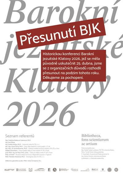 S potěšením jsme přijali zprávu, že Mons. Stanislav Přibyl bude slavnostně uveden na svatovojtěšský arcibiskupský stolec při pontifikální mešní liturgii slavené ke cti sv. Vojtěcha v katedrále sv. Víta, Václava a Vojtěcha. Pro nás méně potěšující je, že intronizace proběhne v sobotu 25. dubna, tedy v den, na který jsme plánovali konferenci Barokní jezuitské Klatovy 2026. Vzhledem k tomu, že někteří z pozvaných na konferenci jsou zároveň pozvaní i na slavnost do Prahy, jsme se rozhodli Barokní jezuitské Klatovy přesunout na podzim. | ||