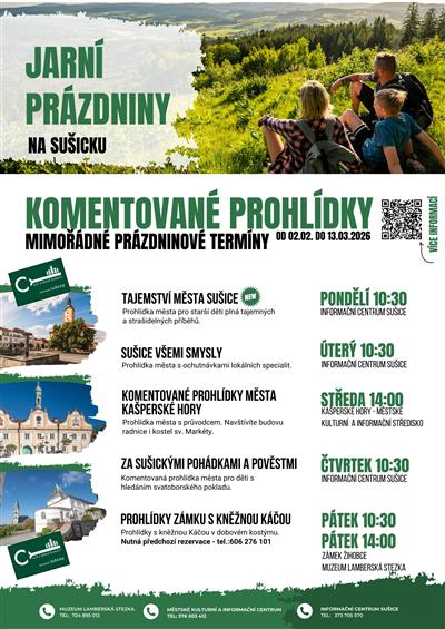 Ve spolupráci s IC Sušice a IC Kašperské Hory vznikl komplex prohlídek na Sušicku o jarních prázdninách. V rámci jarních prázdnin můžete každý pátek od 10:30 a 14:00 navštívit také muzeum Lamberské stzeky v Žihocbcích s kněžnou Kateřinou von Lamberg, alias kněžnou Káčou. Nutná předchozí rezervace na tel. 606 276 101 nebo na emailu info-muzeum@zihobce.eu.