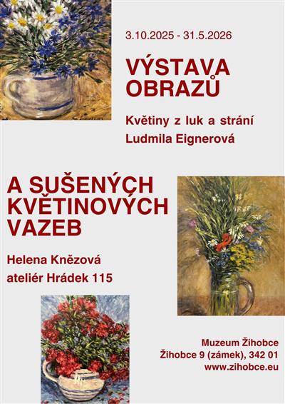 Chybí vám v zimním období vůně a barvy květin? Výstava obrazů Ludmily Eignerové ze Žihobec a květinových vazeb Heleny Knězové vás naladí na teplý jarní a letní čas.